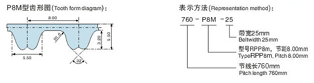1、RPP8M橡胶单面齿同步带属于Ω齿形同步带, 是8M橡胶单面齿同步带和S8M橡胶单面齿同步带的改进型。